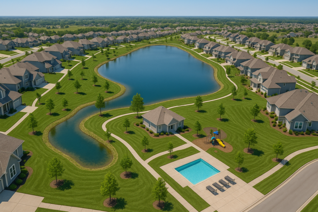 Wolf Creek — A new Spring Hill community at 193rd & Ridgeview featuring lake and pond lots, walking trails, a future pool and playground, and homes priced from the $500Ks–$600Ks. Schools are within walking distance.